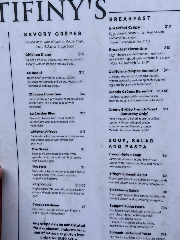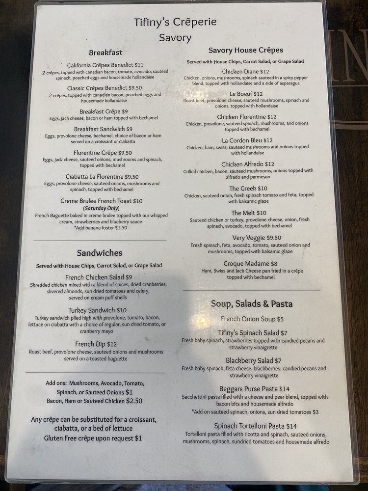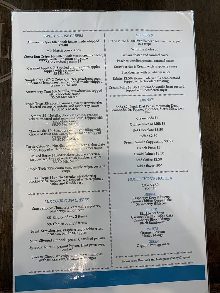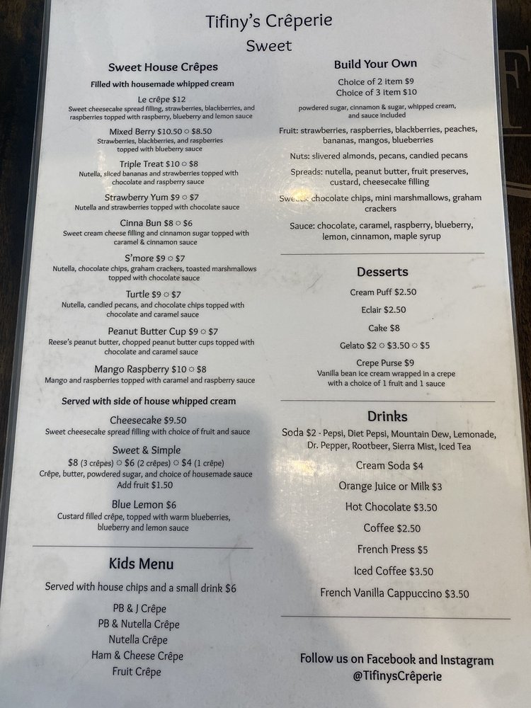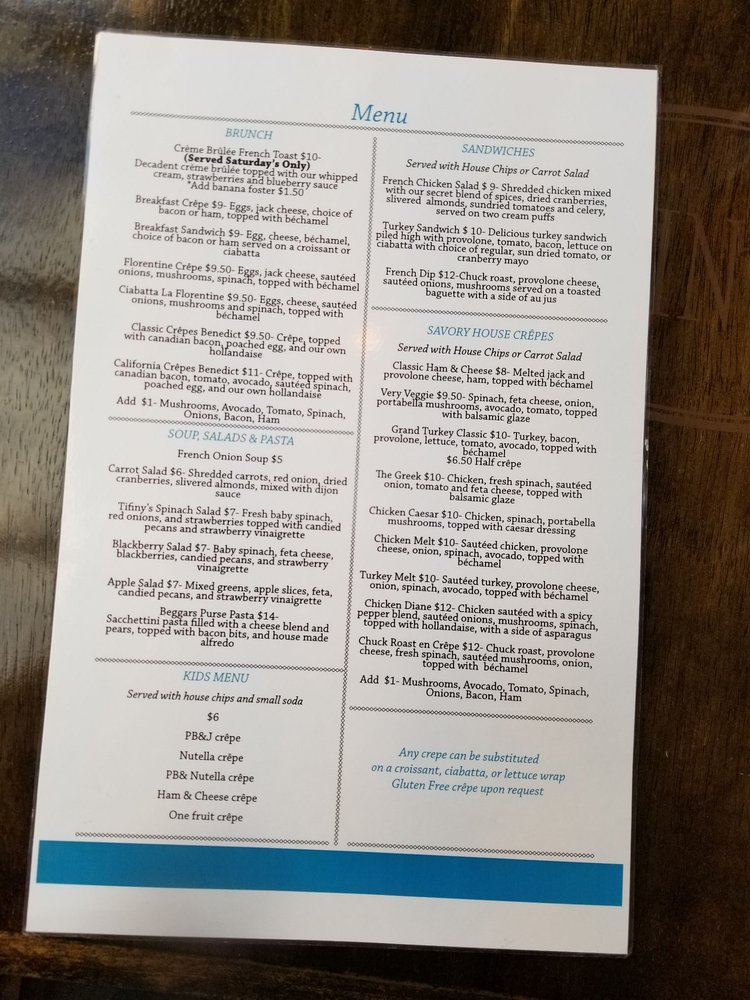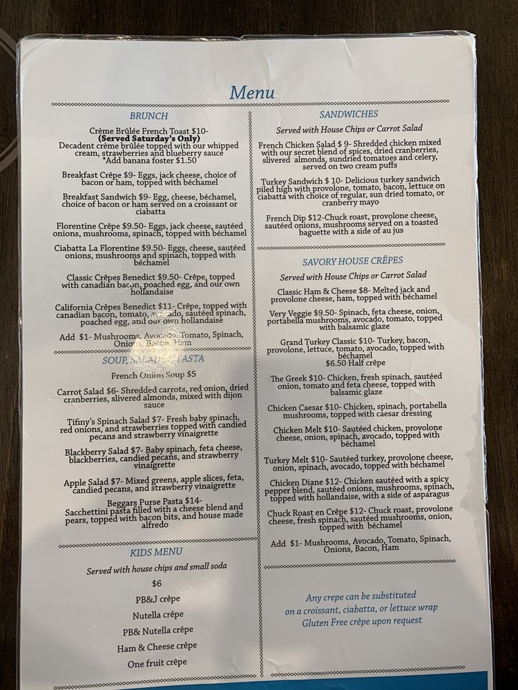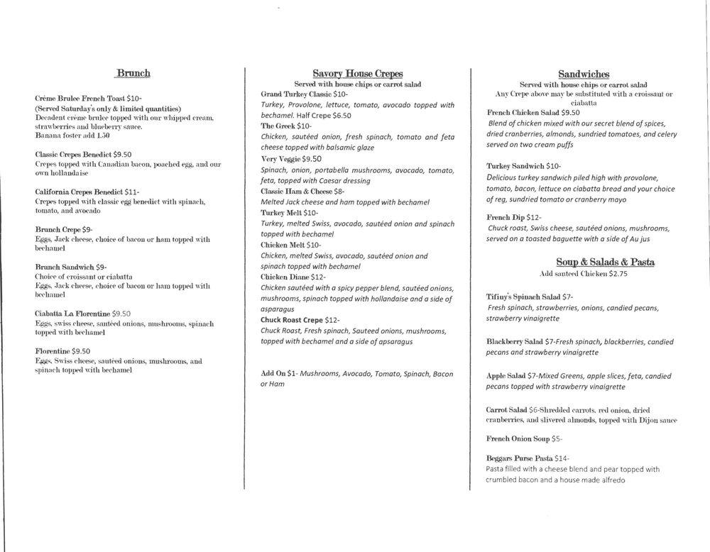Tifiny's Creperie Menu (Update 2025)